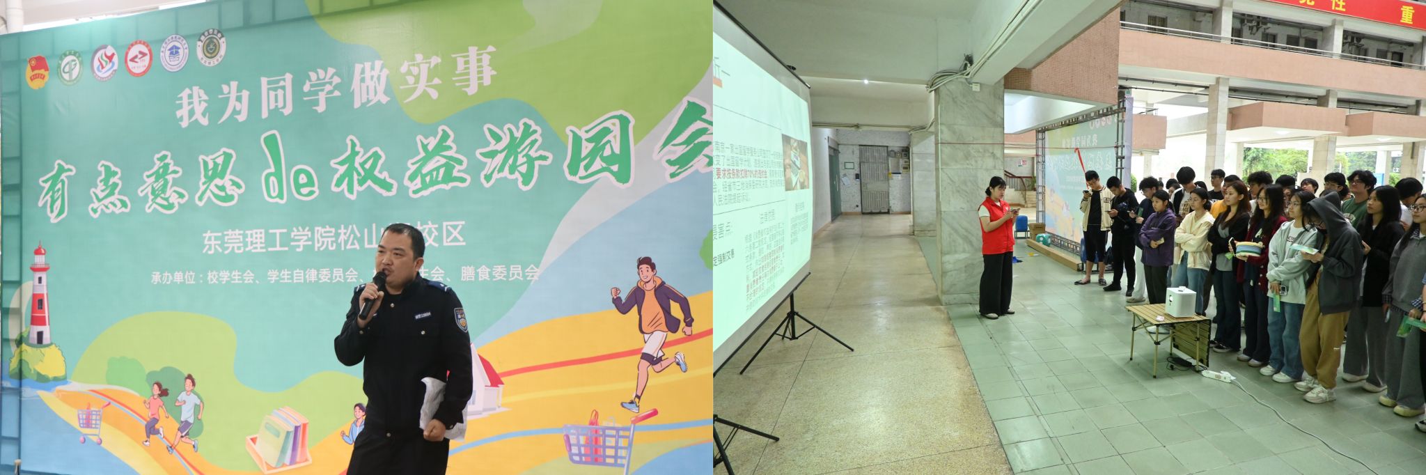 3月15日,校学生会“我为同学做实事——莞工权益周”平安校园建设系列活动在yl88858永利集团两校区火热开展。本次活动以“消费者权益”“防诈宣传”“食品安全”为核心议题,校学生会联合学生自律委员会、研究生会及膳食委员会等学生组织,通过开展线上知识问答、线下权益周游园会等活动普及强化日常校园消费安全意识,吸引近3000名学生参与。活动不仅深化了权益保护教育,更将平安校园理念融入校园治理体系,为构建“共建共治共享”的和谐校园注入青春动能。
