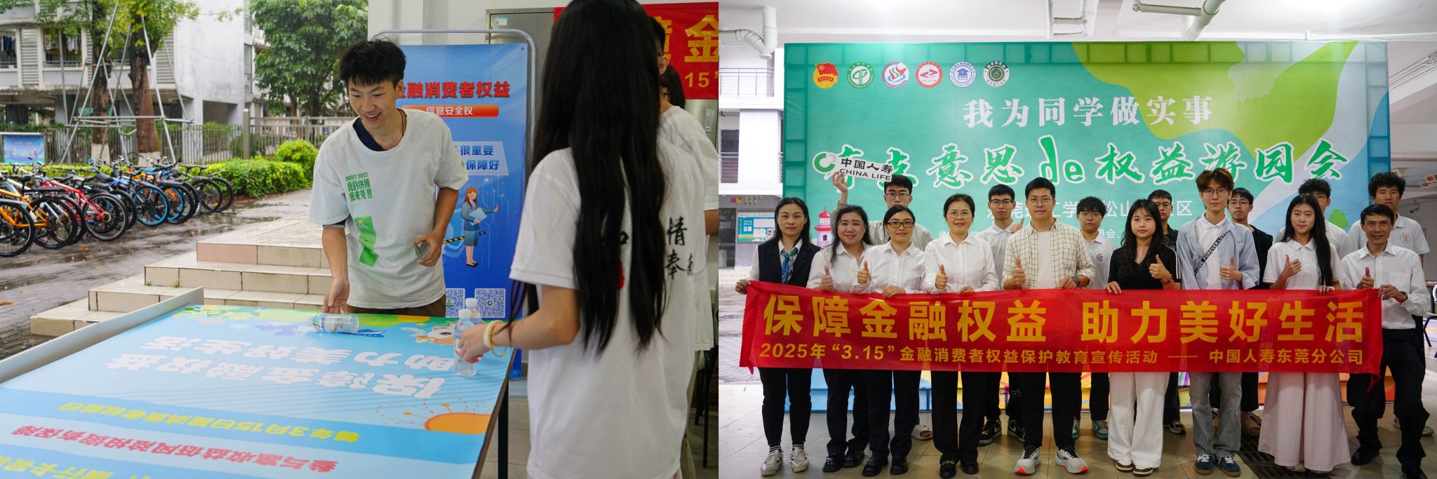 为破解学生消费权益意识薄弱的问题,校学生会联合中国人寿东莞分公司推出“金融消保知识加油站”,以“罐推”与套圈游戏实现金融教育的趣味传播。活动现场设置“九大权益识别墙”,学生需将“七日无理由退货”“价格欺诈”等场景与对应权益类别匹配,强化认知。校企合作模式不仅为校园科普注入专业力量,更拓宽平安校园的治理维度,为消费环境增添安全保障。