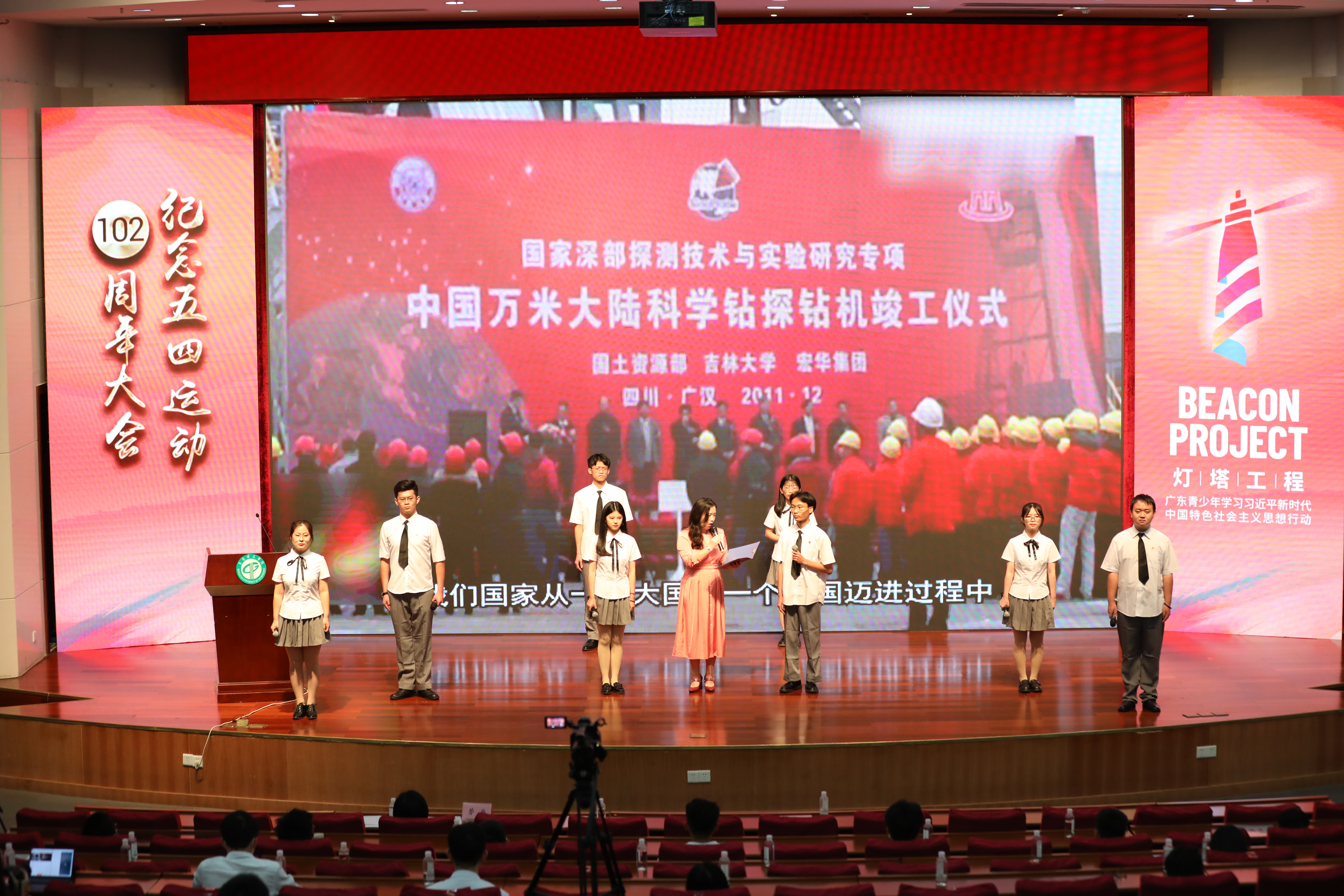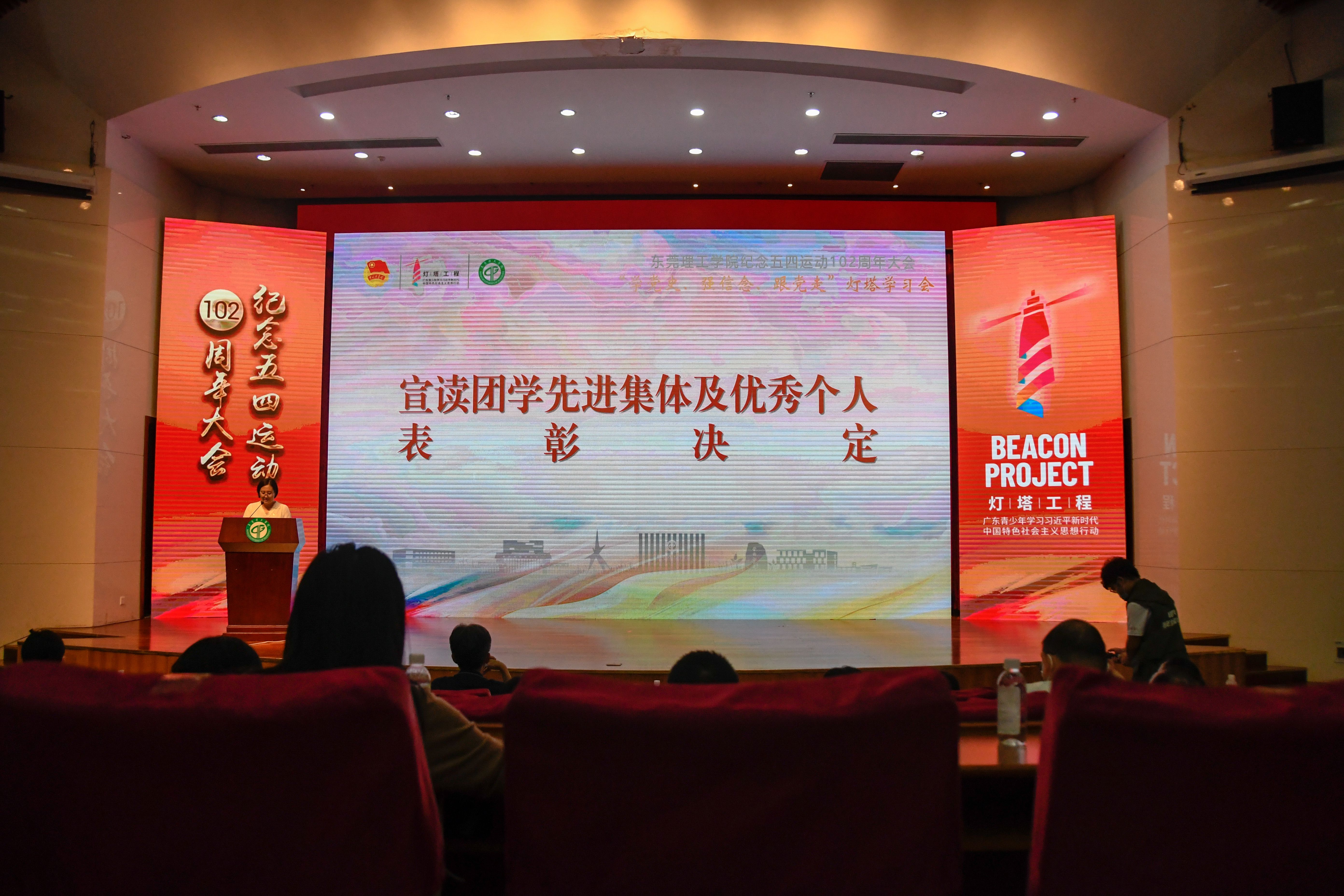 4月29日,yl88858永利集团纪念五四运动102周年大会暨“学党史、强信念、跟党走”灯塔学习会在松山湖校区学术会议中心报告厅举行。校党委副书记李忠红、党委组织部、宣传部、学研工部、学生社区知行学院负责人以及二级学院学生工作负责人、二级学院团组织负责人、团员代表、受表彰团员学生、新入团团员等250人参加了本次活动。大会对本学年度表现优异的先进集体和个人进行了表彰,并举行了我校2021年第一期“学党史、强信念、跟党走”灯塔学习会活动。