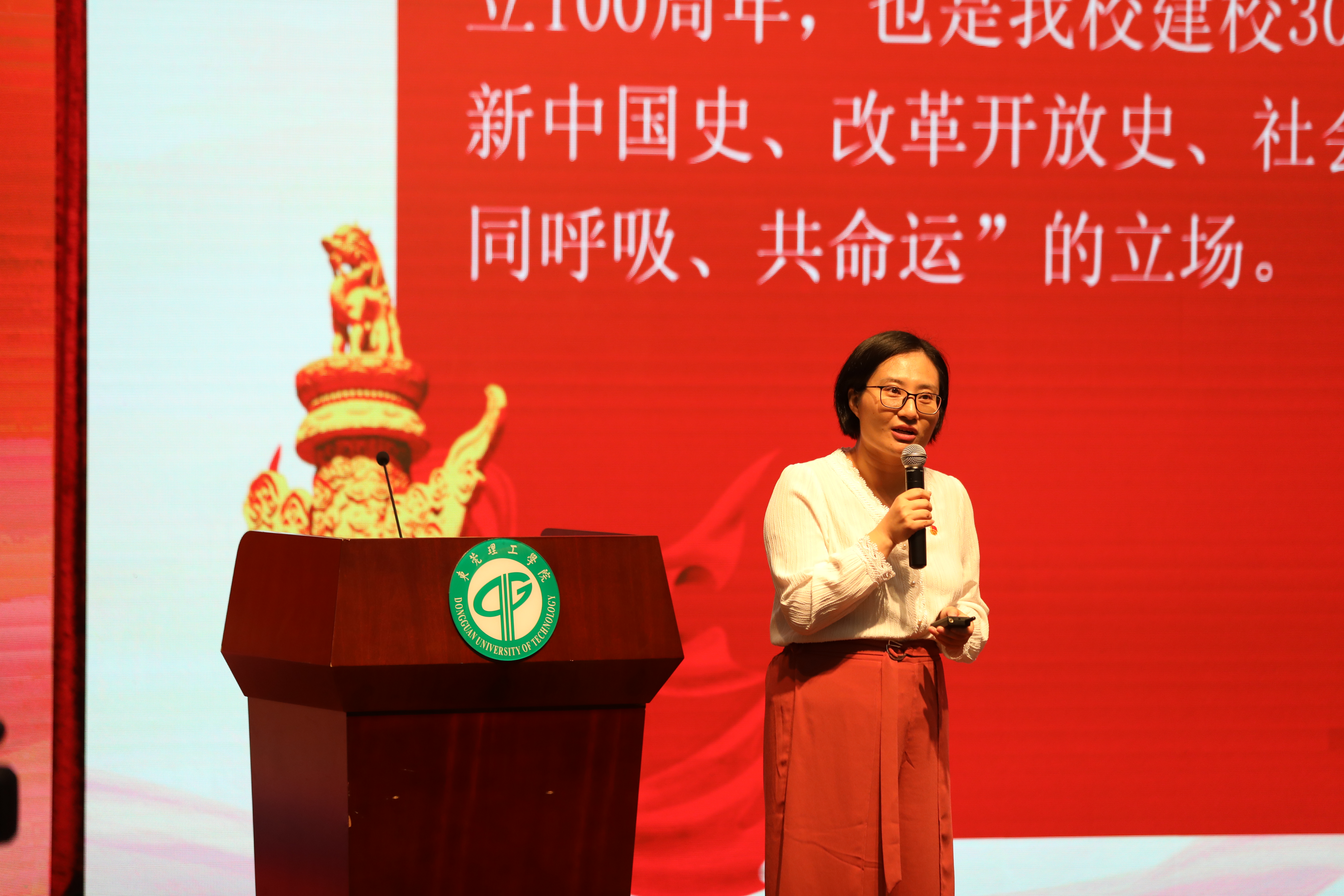 劳丹书记首先带来党团课《不忘本来,开创未来》。她以中华民族源远流长的历史为切入点,详细讲解了学习党史的重要性和必要性。并鼓励莞工青年要以史为鉴,不忘本来,矢志复兴,开创未来。