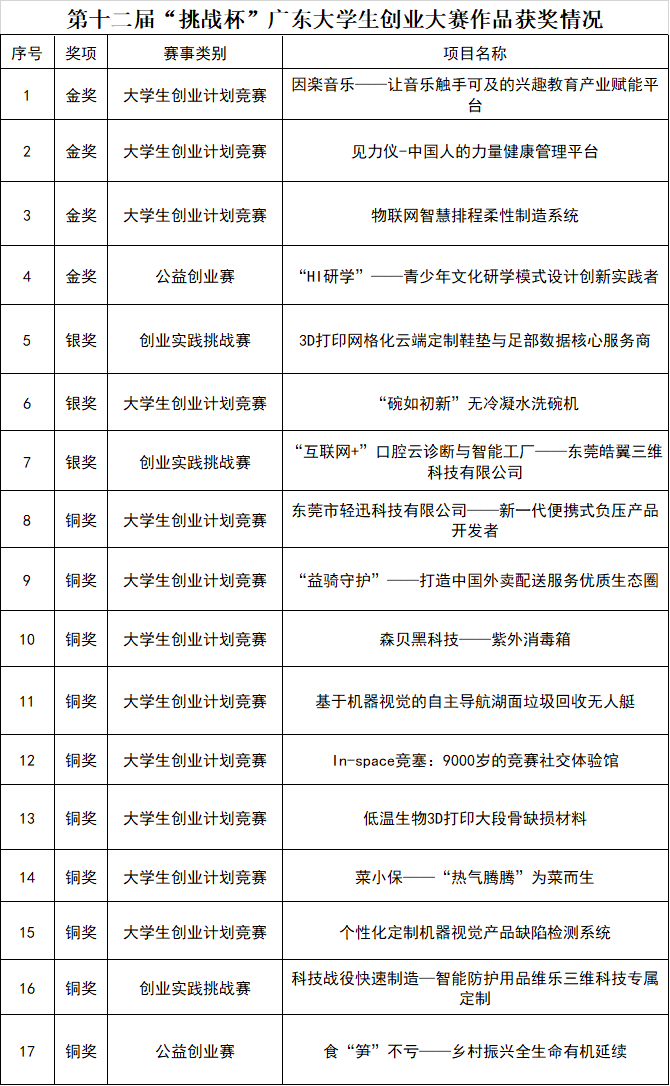 第十二届“挑战杯”广东大学生创业大赛获奖作品