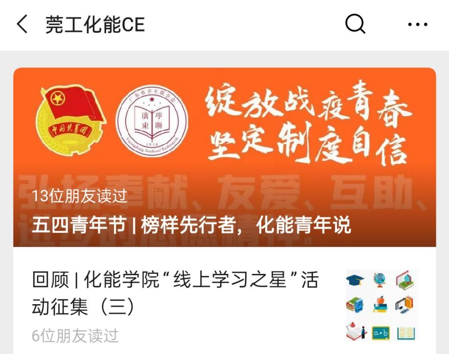 化学工程与能源技术学院则推出“榜样先行者,化能青年说”推文,邀请莞工之星提名奖获得者和获得“大学生标兵”称号的优秀同学,分享他们践行自己的责任和使命的经历和感想。