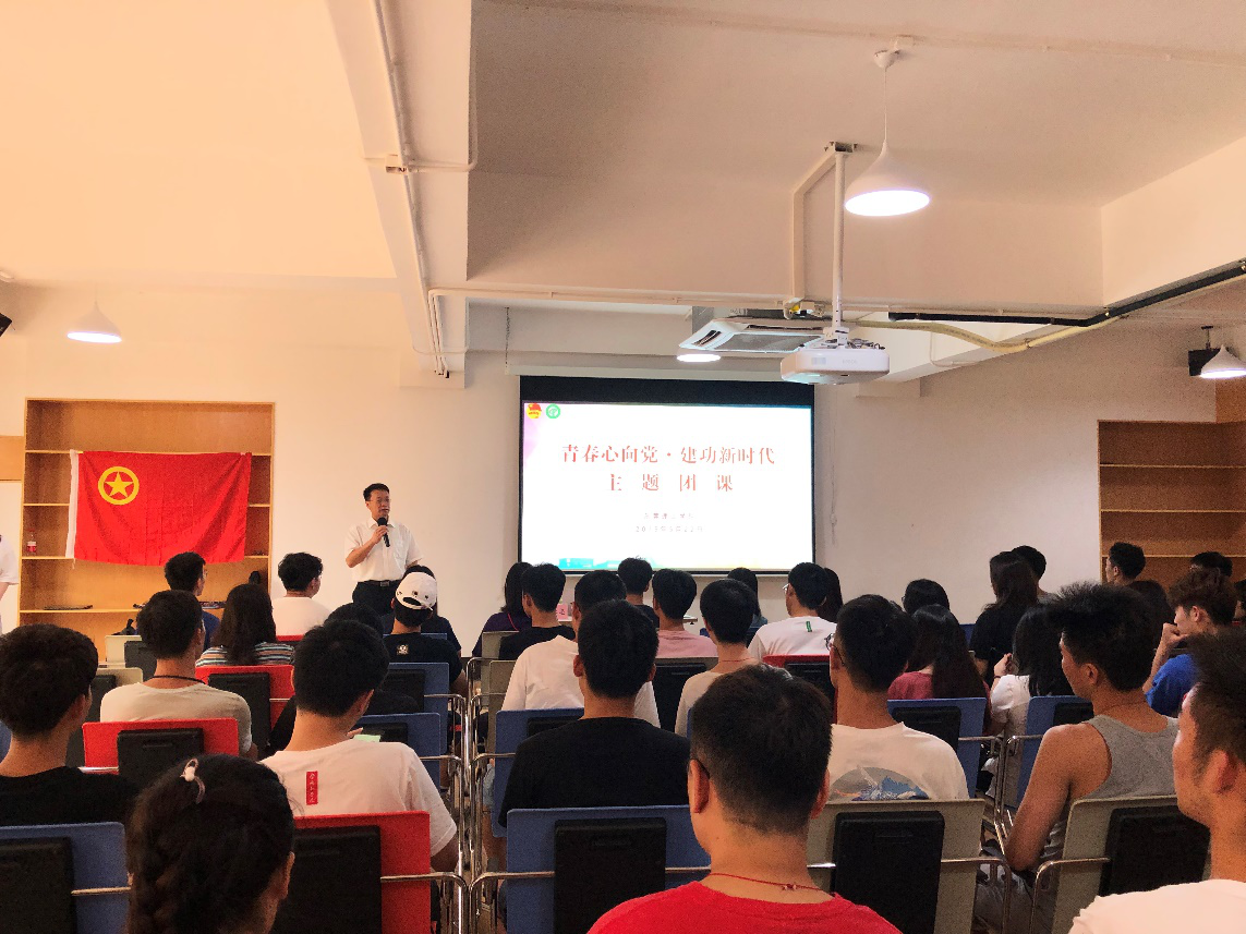 本次团课以“青春心向党,建功新时代”为主题。冯永忠围绕学习习近平新时代中国特色社会主义思想、党的十九大精神等重要内容,用详实的案例和幽默的语言深入浅出地为同学们讲解了“信仰是什么”以及“共产主义是什么”。冯永忠指出,信仰的力量是无可估量的,有信仰的人是不可战胜的,作为新时代的新青年,同学们应该坚守共产主义信仰,不忘初心,不懈奋斗,为实现中华民族伟大复兴的中国梦作出自己的贡献。