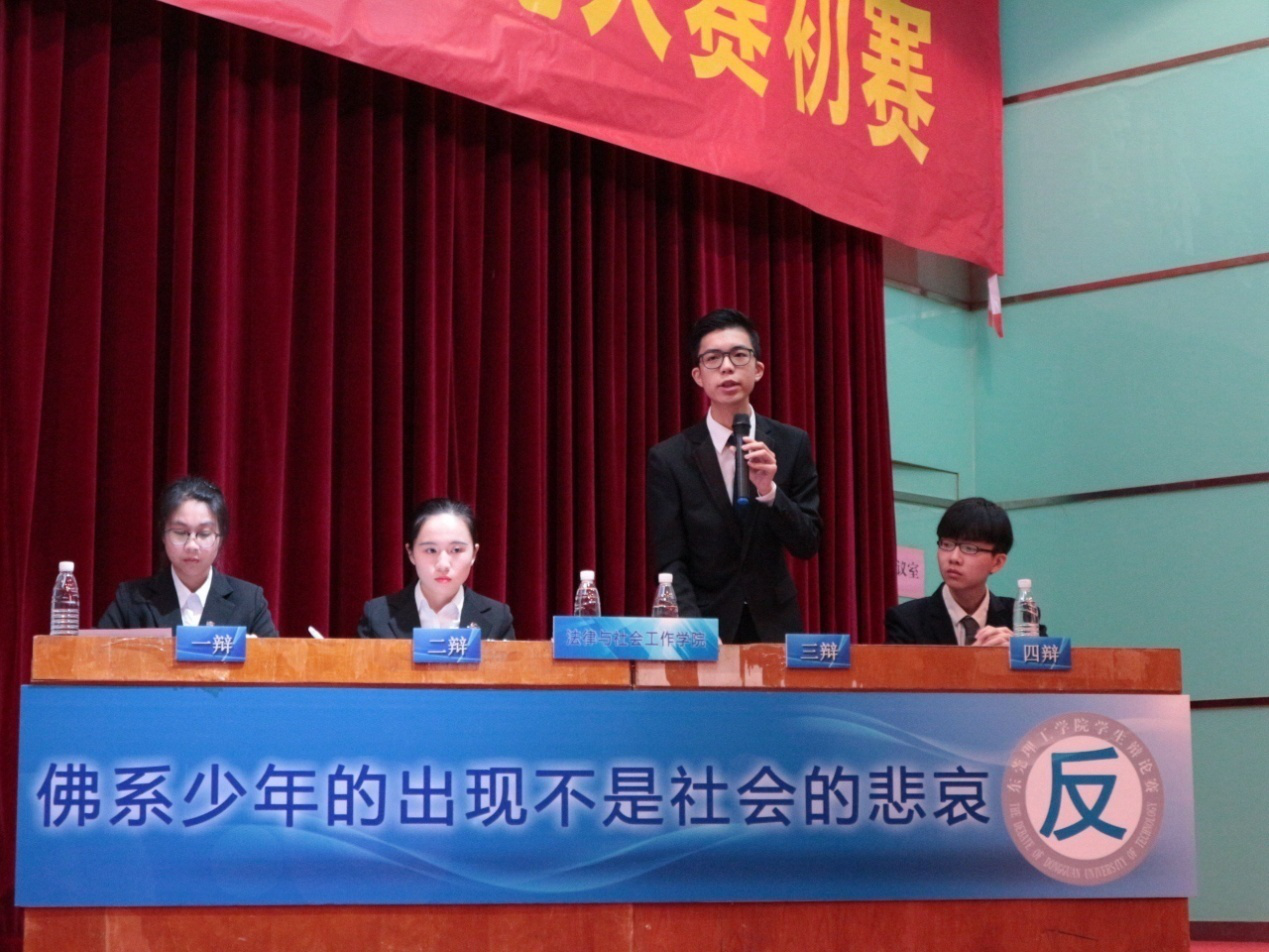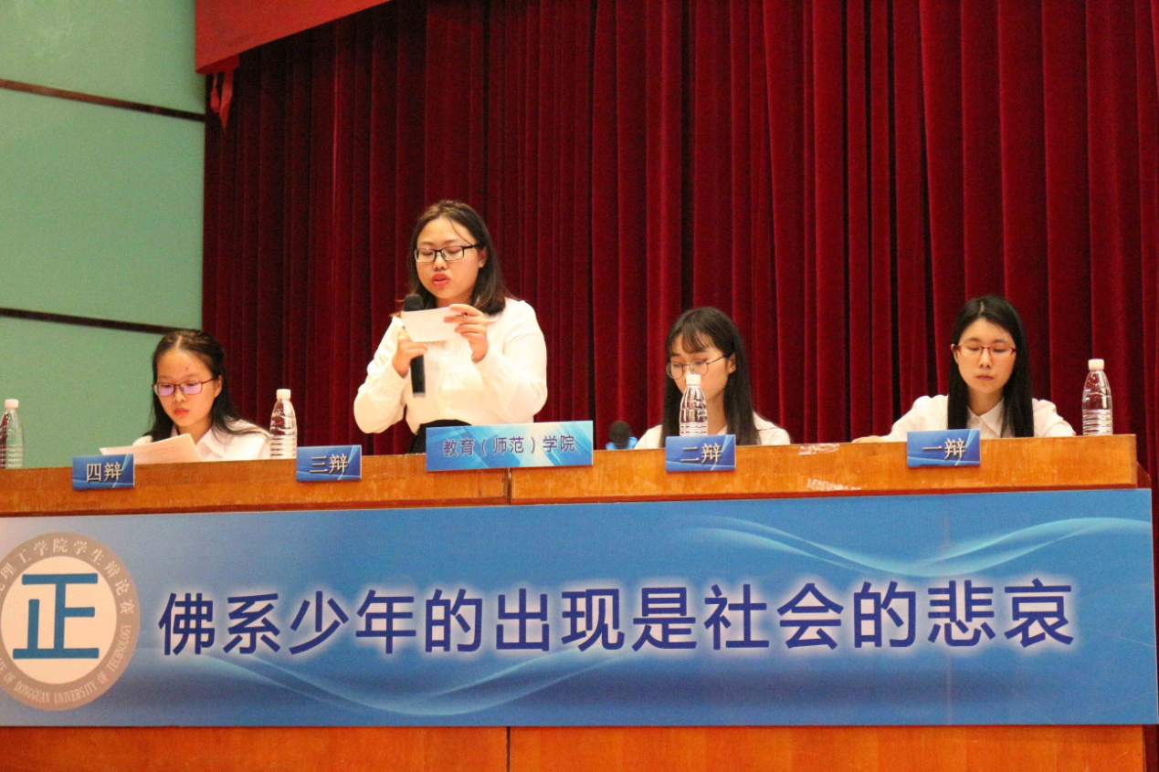 初赛第四场辩论正反方分别是文学与传媒学院代表队和机械工程学院代表队,正方辩题为“佛系少年的出现是社会的悲哀”,反方辩题为“佛系少年的出现不是社会的悲哀”。经过一番激烈的辩论对决后,文学与传媒学院代表队得分为91分,机械工程学院代表队得分为90分,最终文学与传媒学院代表队获得优胜。同时,此次大赛也诞生了优秀辩手和最佳风采奖得主,他们分别是正方二辩钟筏童和反方二辩王星亮。