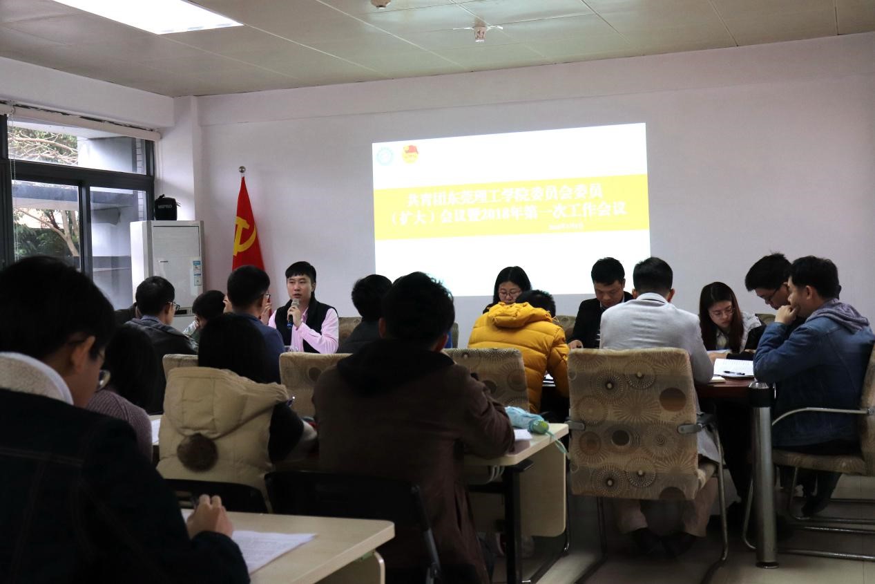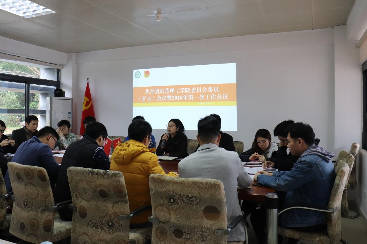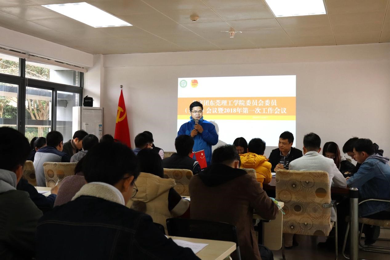 2018年3月8日下午三点,共青团yl88858永利集团委员会委员(扩大)会议暨2018年第一次工作会议在松山湖校区学生活动中心C栋一楼会议室举行。参加本次会议的有学生工作部部长、校团委书记黄金和老师、学生工作部副部长张敏老师、学生部领导、校团委委员、各二级二级学院团支书记、学生副书记和师生团干代表。会议由校团委组织宣传部副部长张钢老师主持召开。