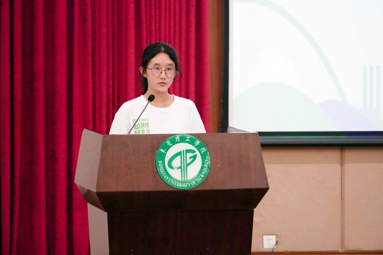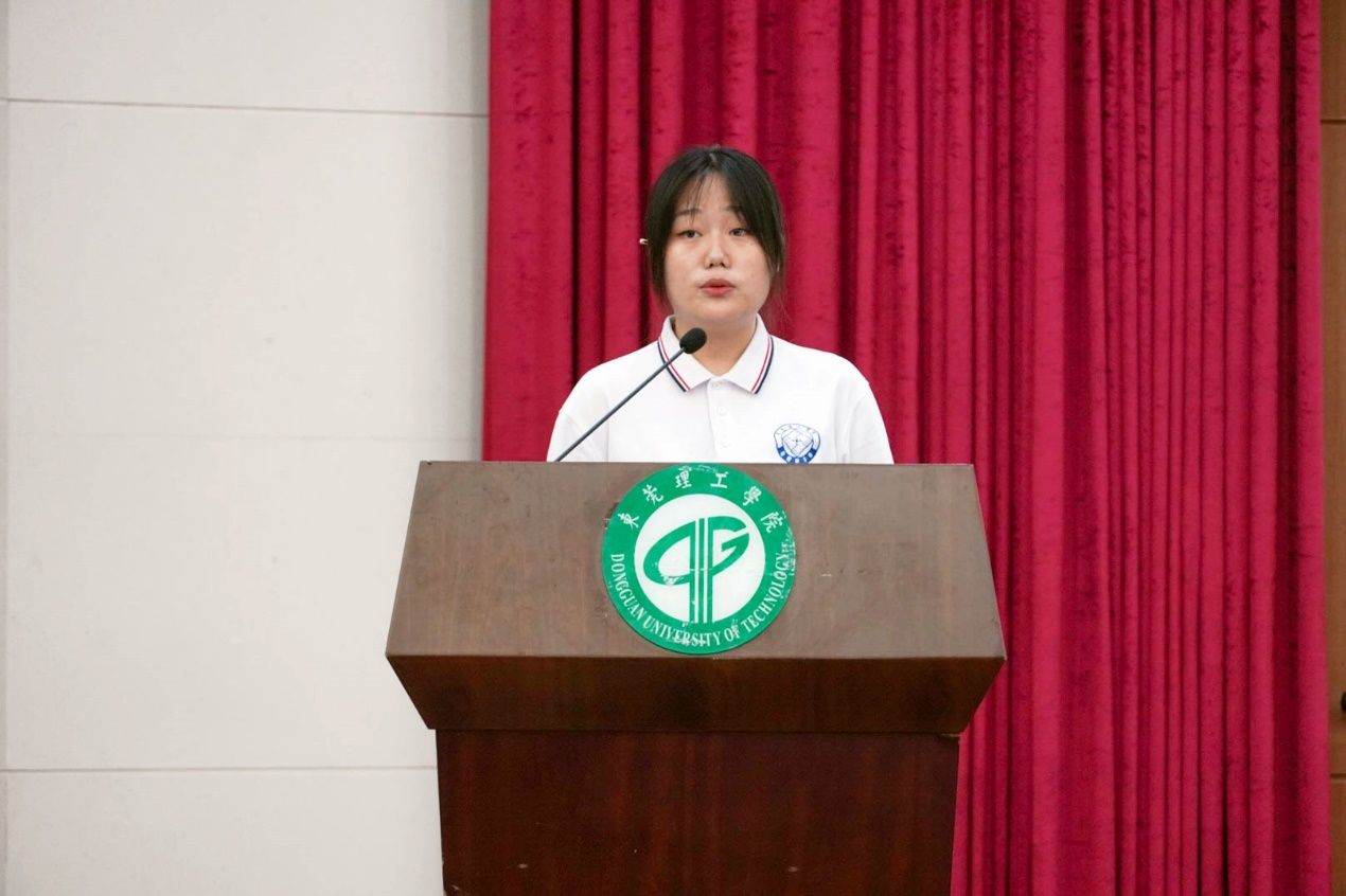 来自2023级微电子科学与工程实验1班的唐梓祺作为新生代表表述了她对未来大学生活的向往与规划。她表示在未来四年,我们不仅要敏锐拥抱机遇,更要勇敢迎接挑战,要永远保持好奇心和求知欲,向下扎根,向上生长,迸发出璀璨之光。