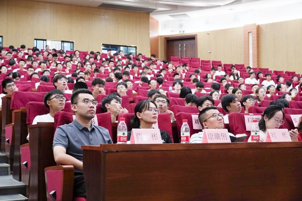 党委副书记翁炎泉从新生数据的分析出发,展示了新生的生源情况。同时,通过学工队伍介绍、主要开展的工作以及如何快速度过新生适应期等方面为新生们介绍了学院的学生工作。学院一直以来高度重视学生工作,坚持以学生为中心,不断加强学生思想教育和全面发展的指导,积极打造良好的学生成长环境。