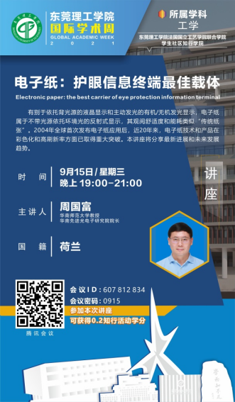 讲座上,周教授提出,电子纸是一种护眼信息终端的最佳载体,它是一种新型的显示屏技术。其后,周教授详细地为同学们介绍了电泳电子纸和电润湿电子纸两种电子纸的区别,还通过生动有趣的动画,来为同学们介绍电子纸的结构组成,以寓教于乐的方式,让大家领略电子纸的魅力。在讲座的尾声,周教授点出,虽然电子纸目前还面临着各种挑战,但它的市场前景不容小觑。