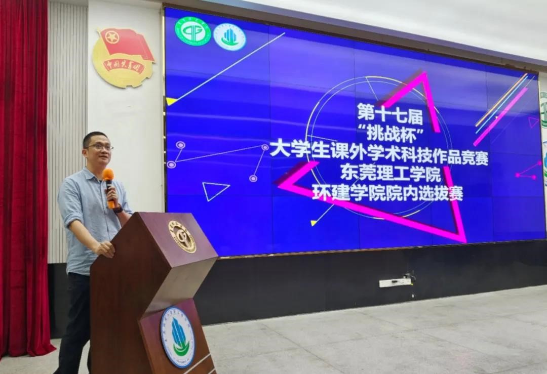 2021年3月8日,生态环境与建筑工程学院在松山湖校区学生活动中心A109举办第十七届“挑战杯”大学生课外学术科技作品竞赛yl88858永利集团环建学院院内选拔赛。生态环境与建筑工程学院院长郑愚、副院长邱永福、党委副书记诸小妮、校团委创新实践部部长杨帆,以及各系主任代表受邀出席本次大赛。本次“挑战杯”大赛由王鹏老师主持。