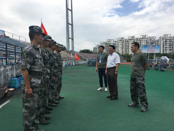 2018年9月13日上午10点,计算机与网络安全学院党总支书记路晓军、副书记黄辉,以及辅导员赵海峰、杨英洵、李国歌一行,代表学院赴三营所在训练场地看望和慰问军训教官和新生。
