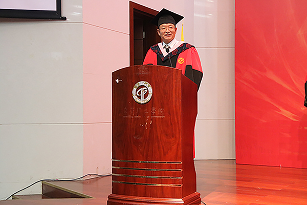 院长田根胜对2018届毕业生中一些优秀代表提出表扬,并对全体毕业生叮嘱和祝福道:“希望同学们把读书贯穿一生、把勤于思考贯穿一生、把热爱学习的习惯贯穿一生。今天同学们即将迈向社会,衷心祝愿大家怀揣理想、端正态度、敢闯善闯,拥有开拓者的精神。”