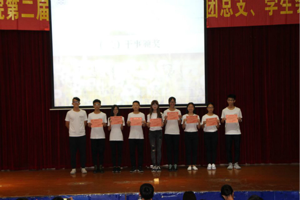 在大会开始前,团学干事邀请全体委员、部长和副部长进行游戏互动,以此获得由各部门代表赠送的部门礼物。在领取礼物后,各委员、部长和副部长带上眼罩,由干事带领进入学术报告厅舞台揭秘惊喜。随后,大会在现场的热闹气氛中正式拉开序幕。接着,所有委员、部长和副部长对团学全体成员这一年的辛勤工作表示感谢,并共同合唱《夜空中最亮的星》,将大会的气氛逐渐推向高潮。大会上,学生会主席李梓翊为获得2017-2018学年度第二学期“优秀干事”称号的干事颁发奖状,团总支常务副书记丁懋为获得2017-2018学年度“荣誉干事”称号的干事颁发奖状。紧接着,大会播放委员、部长和副部长为干事录制的寄语视频,并播放第一届团总支、学生会常务副书记徐振铎特别送上的祝福视频。随即,节目表演在喝彩声中展开。两位委员与干事合唱歌曲《崇拜》;各部门干事代表一起朗诵诗歌。在分享环节中,多位团学成员上台分享自己在团学的心路历程,并表达了对部门、团学的感谢和祝福。