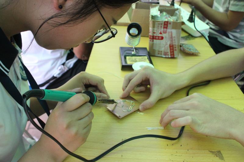 过来体验焊接电路板的小姐姐
