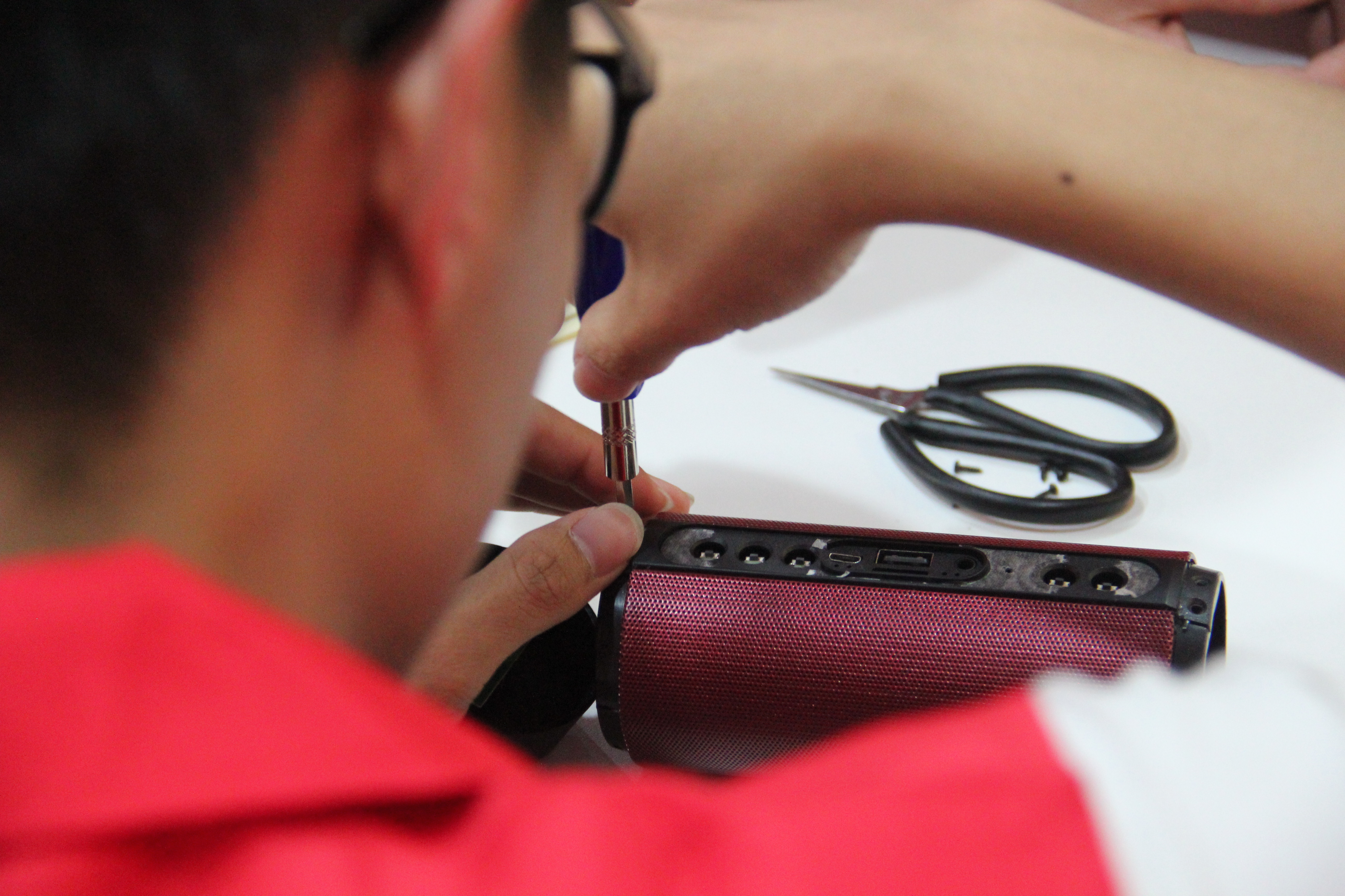 4月12日下午两点整,电子工程与智能化学院志愿站与电子创新实验室的成员们在莞雅社工的带领下,利用周四下午的课余时间在莞雅社区活动室开展了义务电器维修活动。两点半左右,预约维修的同学纷纷把需要维修的电器拿到了活动室,在志愿者登记信息并问清具体损坏情况后,实验室的师兄们马上动手修理起来。