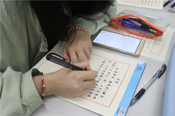 比赛前,同学们提前准备了自己喜欢的短文或诗歌作为自己的参赛作品。比赛时,现场的志愿者为参赛同学派发比赛纸张。在比赛过程中,参赛的同学认真并且专注的将作品写好。比赛结束后,志愿者将参赛作品收好并上交。