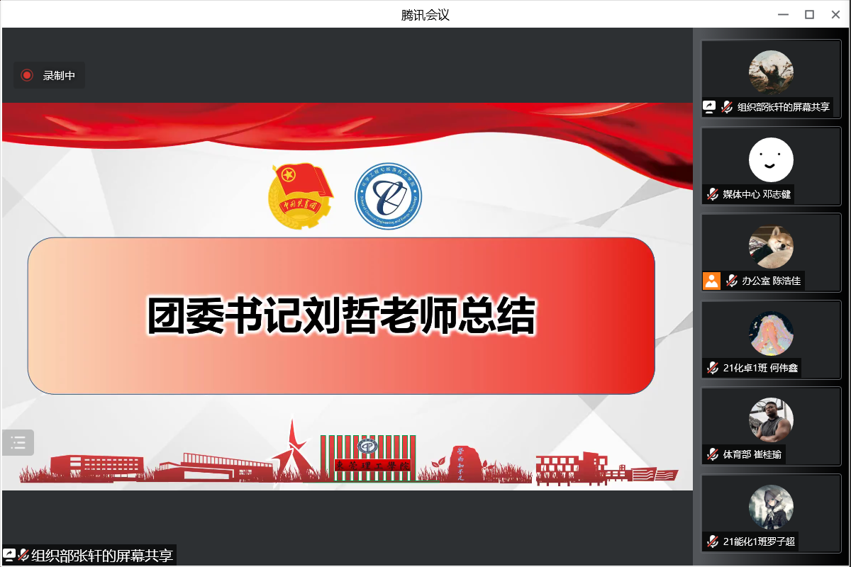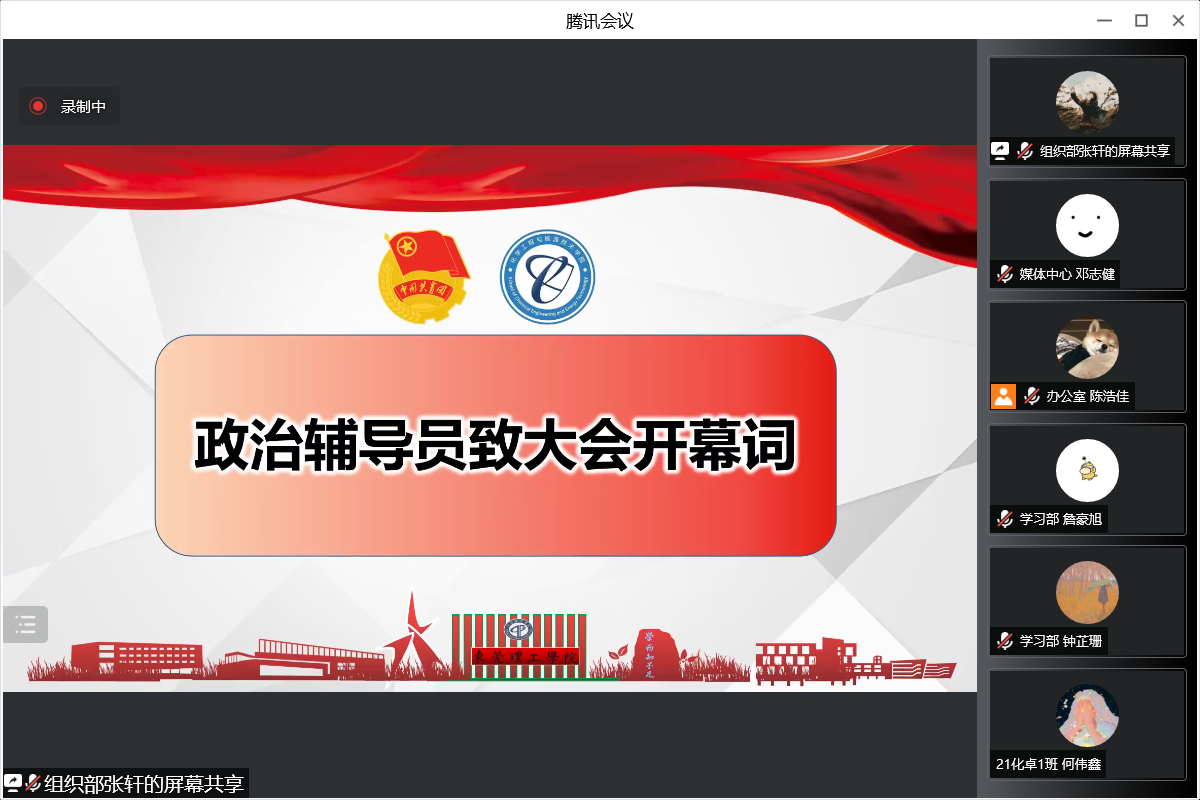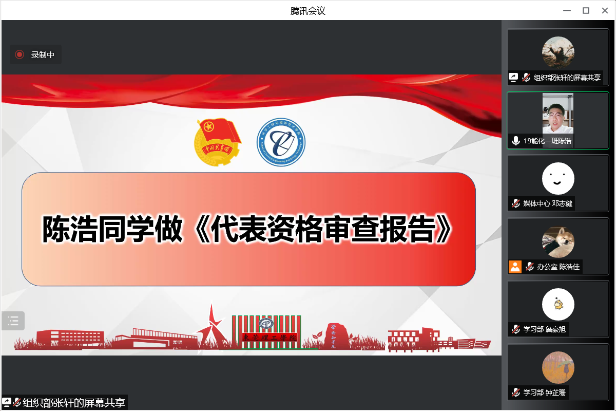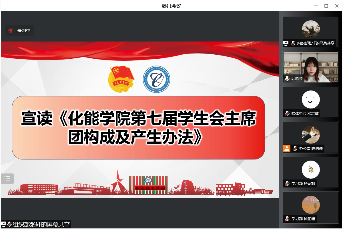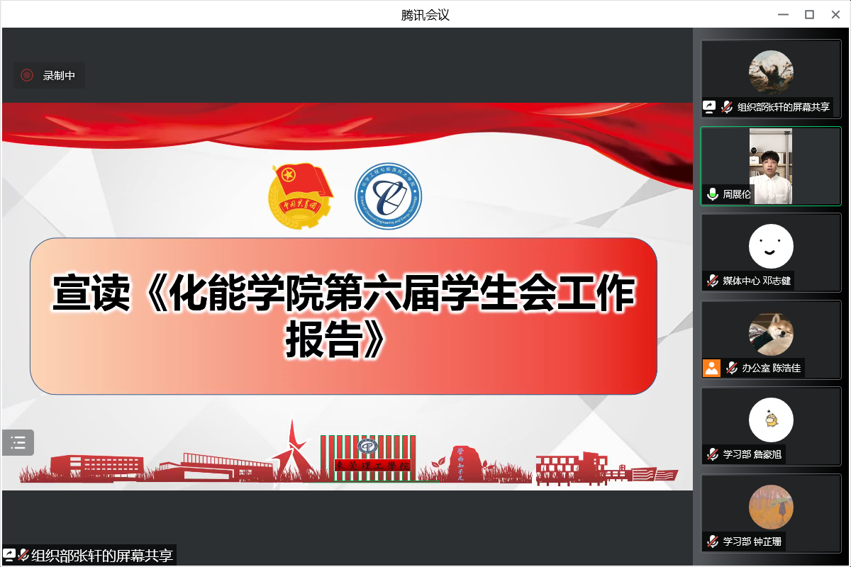 7月11日晚,化能学院第七次学生代表大会暨第六届团委、学生会第二次全体大会在腾讯会议室线上召开。化能学院分团委负责人兼政治辅导员刘哲、学工办负责人兼政治辅导员谢真葵、政治辅导员涂叶满、张博、王馨出席会议,学生代表共180余人参加会议。在全体代表的共同努力下,会议各项预定议程圆满完成。