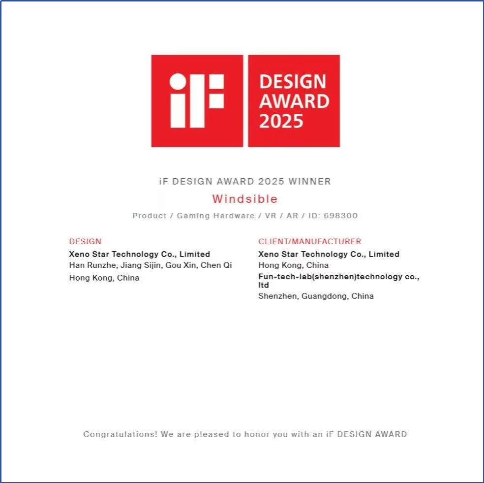 2025年,Windsible凭借“极简设计+硬核功能”的双重优势,荣获德国IF设计奖。该奖项以严苛的商业落地标准著称,而Windsible的获奖,不仅是对其工业美学的认可,更是对其“从实验室到消费者”完整产业链能力的肯定。