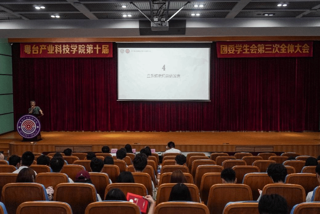 为总结前期工作成果、明确未来发展方向,6月5日下午,粤台产业科技学院第十届团委、学生会于莞城校区学术报告厅顺利召开了第三次全体大会。学院党委副书记丘永辉、辅导员付中鑫、张星星、组织员袁伴玲以及团委、学生会全体成员出席了本次会议。大会由团委、学生会成员姚彤燕主持。
