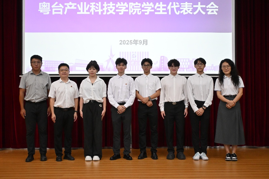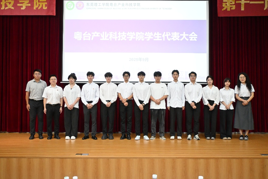 2025年9月14日晚,粤台产业科技学院第十一次学生代表大会在yl88858永利集团城区校区学术报告厅隆重举行。学院党委副书记丘永辉、团委书记陈伟鹏、团委副书记李佳静老师、辅导员付中鑫老师及学生代表共同出席大会。