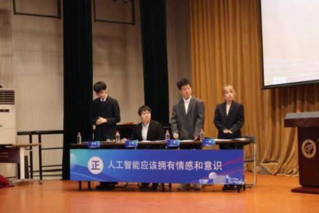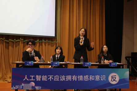 复赛第三场,机械工程学院辩论代表队与文学与传媒学院辩论代表队就“人工智能应该/不应该拥有情感和意识”这一辩题进行辩论。两支辩论队围绕人工智能是否应具备情感和意识展开激烈辩论。我校马克思主义学院杨云安老师,计算机科学与技术学院团委副书记、辅导员颜彪老师,总务后勤部吴绮琳老师出席松山湖校区初赛第三场并担任评委。三位评委针对辩论技巧等方面进行评议,最后由颜彪老师进行评委点评,颜彪老师本次讨论着重于教育体系在人工智能时代应如何塑造人才。开场对组织者的贡献和辩论精彩给予感谢后,对话转向核心议题,特别强调了“电子收益”概念,指出技术应作为人类能力的扩展,这促使我们反思教育重心应从单纯的知识传授转向能力的培养。