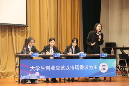 复赛第一场,国际微电子学院辩论代表队与材料科学与工程学院辩论代表队就“大学生创业应该以个人兴趣/市场需求为主”这一辩题展开辩论。两支辩论队围绕大学生创业的方向展开了激烈辩论。复赛第二场,电信工程与智能化学院辩论代表队与教育学院(师范学院)辩论代表队就“社交媒体对人际交往的影响是积极的/消极的”这一辩题展开辩论。我校马克思主义学院岳凤副教授,组织统战部干部培训科科长张钢老师、东莞中学辩论队指导老师张亦康出席松山湖校区的初赛一二场现场并担任评委。