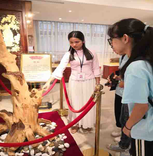 莞香,作为东莞市特产,有着其独特的历史文化价值与经济价值。小组成员于上午到达了广东尚正堂集团,在这里,他们邂逅东莞这座“东方香都”“沉香胜地”的前世今生。该集团的工作人员热情地向调研小组成员们介绍莞香精品以及莞香产业的发展现状。通过这次参观学习小组成员系统地了解了莞香的历史脉络及其体现出来的继承精神。