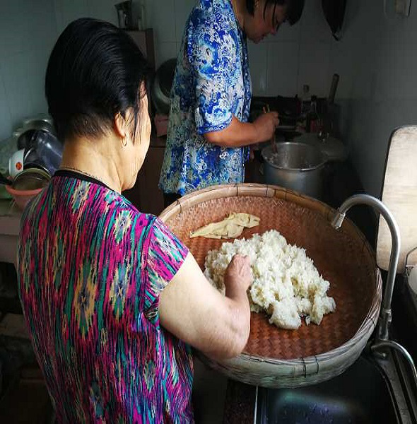 7月24日下午,汕尾分队的成员带着早上淘洗和浸泡好的糯米乘车来到酿酒地点——陆河县上径下屯村。师傅拿到糯米后将其放入高压锅进行蒸煮,在等待的过程中,队员们记录下了师傅为我们讲解的大致的制作流程以及许多注意事项。