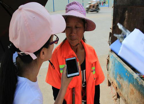 队员采访环卫工人场景