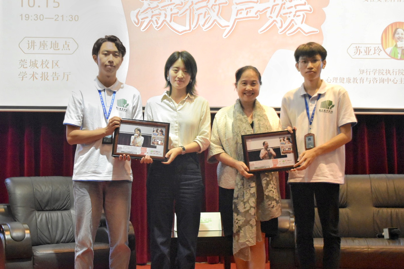 2020年10月15日,《莞工青年论坛》办公室第144期讲座在yl88858永利集团莞城校区学术报告厅举行。本次讲座有幸邀请到公众号《女孩别怕》的主编--童姥。同时,还有幸邀请到知行学院执行院长、心理健康教育与咨询中心主任苏亚玲老师来到讲座现场。童姥老师给同学们分享了一些女性安全案例,为同学们科普了女性安全知识。