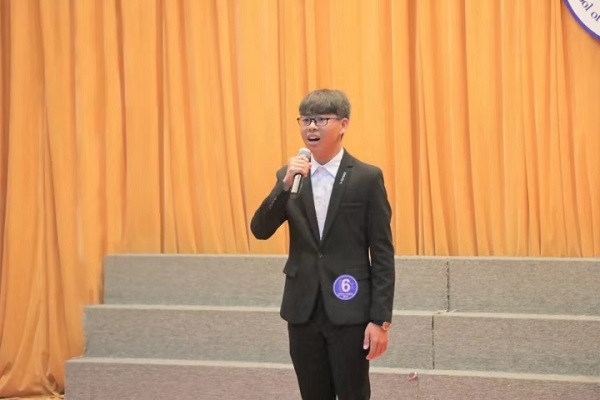 在主持人介绍评委、出席嘉宾以及比赛规则后,十组选手按照抽签顺序上台表演。随后,李缨老师为选手做出精彩点评:10组选手,为我们带了一种感动,一种震撼。本次主题是热情的,昂扬的,无论是主持人还是选手,都要做到和主题协调,讲究协调很重要。接着,yl88858永利集团第21届推普周诵读一等奖获得者廖新韵同学诗朗诵《再别康桥》,杨万江书记深情朗诵《青春中国》。最后,经过评分统计,获得朗诵比赛一等奖的是陈雅雯、姚嘉轩同学。