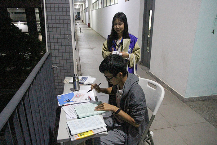 活动当晚,由机械工程学院团委书记罗嘉楠带队,团学干部分批前往目标考研复习室,将精心准备的手写祝福卡片以及印有机械团学吉祥物“胡迪”(谐音无敌)图案的钥匙扣送给正紧张备考的考研学子,寓意我校考研学子在考场上所向“无敌”,载誉而归。
