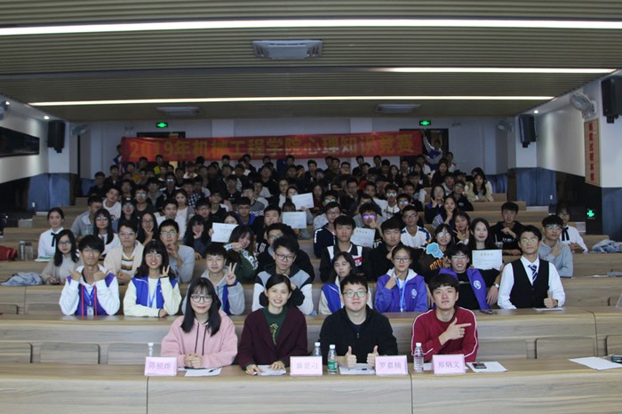 2019年11月30日晚19点30分,由机械工程学院第十二届团委、学生会举办的心理知识竞赛决赛在学生中心A109阶梯教室如期举行。出席活动的嘉宾有机械工程学院团委书记罗嘉楠,学院辅导员、心理辅导站站长黄楚刁,第十一届团委、学生会心理辅导站副站长陈桢烨,学院第十二届团委、学生会主席郑炳文。