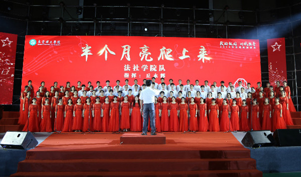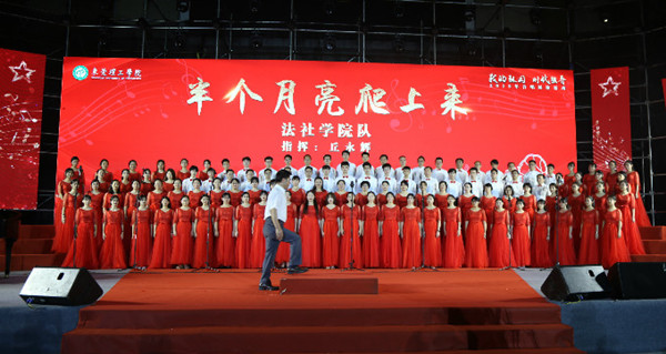 “半个月亮爬上来,依啦啦……”松山湖校区上空响起了法社师生为祖国70华诞献礼的最强音。百人同声齐唱,展现出了法社师生新时代奋进的精神面貌。还是熟悉的旋律,一首《半个月亮爬上来》从莞城一路唱到了松山湖。法社学院的师生在历经将近2个月的排练,在松山湖校区体育馆的决赛现场给了大家一场视听盛宴。