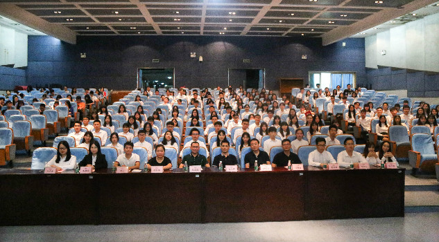 会议进入第二个环节,丘永辉老师、钟丽华老师、邱可荣老师和邹欢老师分别为我院2018-2019学年学生组织负责人、各学生组织的委员们颁发聘书,并与新一届学生干部上台合影留念。