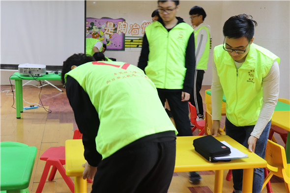 活动伊始,中心负责人给志愿者们进行一个简单的培训,志愿者们在知晓各种细节之后,开始对场景的布置。在这之后,第一个环节开始了,主持人向孩子们介绍具有突出特征的几个省份,希望通过图文结合唤醒孩子们的记忆,但由于文字冗长,该环节并没有取得很好成效,这是值得修正的地方。接着,主持人通过一个趣味小实验为孩子们科普重心的知识,唤起孩子们的兴趣,以便后续活动的进行。紧接着就是几个小游戏,通过拼图和背运气球的游戏,培养孩子们的团队协作能力。在活动结束之后,志愿者们集合起来,共同对今天的志愿活动进行发言,为今后的志愿活动提供建议。