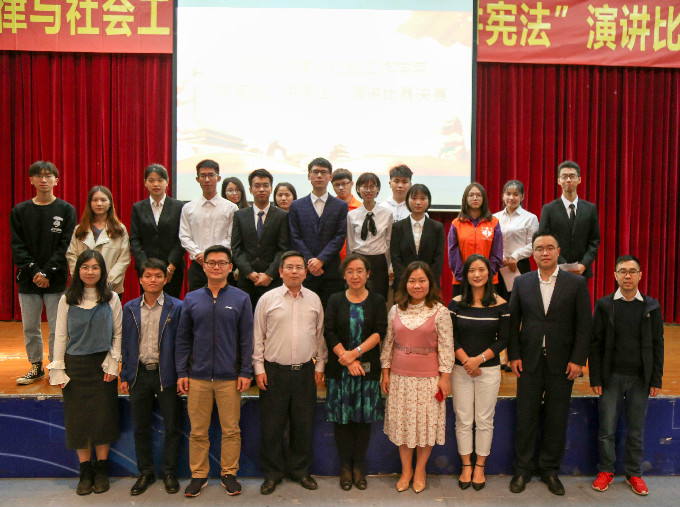 11月27日晚,我院“学宪法,讲宪法”演讲比赛决赛在莞城校区学术报告厅举行,出席本次比赛的评委及嘉宾有副院长朱晓红,东莞市鹏万里文化传播有限公司总经理、校友李溯师兄,学工办主任钟丽华,法学系主任罗兆婧,熊毅军老师,党总支专职组织员陈少典,辅导员邱可荣,辅导员邹欢以及广东省宪法演讲比赛二等奖获得者李雨洙师姐。