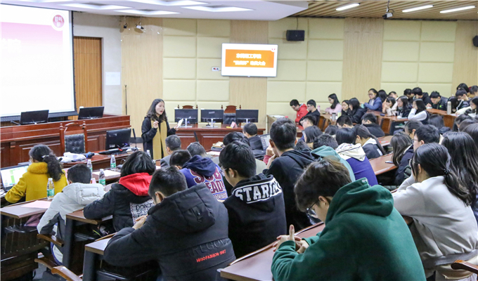 在“挑战杯”宣讲会开始前,刘海波老师首先为同学们介绍“互联网+大学生创新创业大赛”,让同学们了解各式各样调研实践活动,丰富大学生活。刘老师讲到“互联网+”在促进互联网与人们衣食住行等方面融合的同时,也让各类行业从中受益。邱可荣老师向同学们讲解挑战杯的实际意义,并提到在大学应找些有意义的事情做,并非大学知识不实用,而是大家不知道怎么运用专业知识。邱老师还详细介绍挑战杯的赛制进程以及课题的选取方向,希望同学们能够积极踊跃参与。随后15级法学卓越班丁少婷师姐与同学们分享参赛经历,丁少婷师姐讲到当时参加比赛时并没有找准目标,但是在老师的悉心指导与同学们的不懈努力下,团队找到了前进方向,最后取得优异成绩。她认为,一个团队,要有和谐的气氛,团队成员也要通力合作,这样调研才能取得实质性的成果。接着,副院长朱晓红上台播放视频,向同学们展示以往优秀团队的身影,使同学们坚定对参加比赛的信念。在答疑环节中,同学们提出自己对挑战杯各方面的困惑,邱老师一一为他们解答。